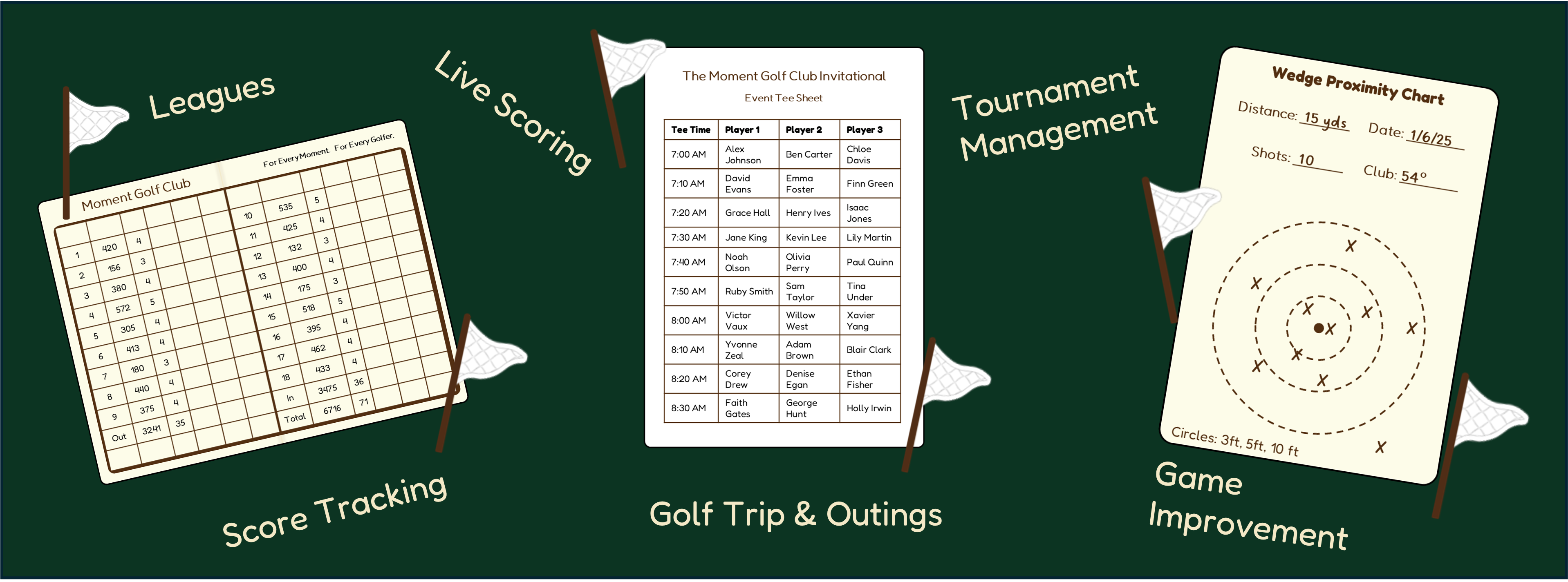 Thoughtfully designed modern software aimed at improving the golf experience in all aspects of the game. From tournament and event management to practice and stat tracking, Moment Golf is here to support every golfer.